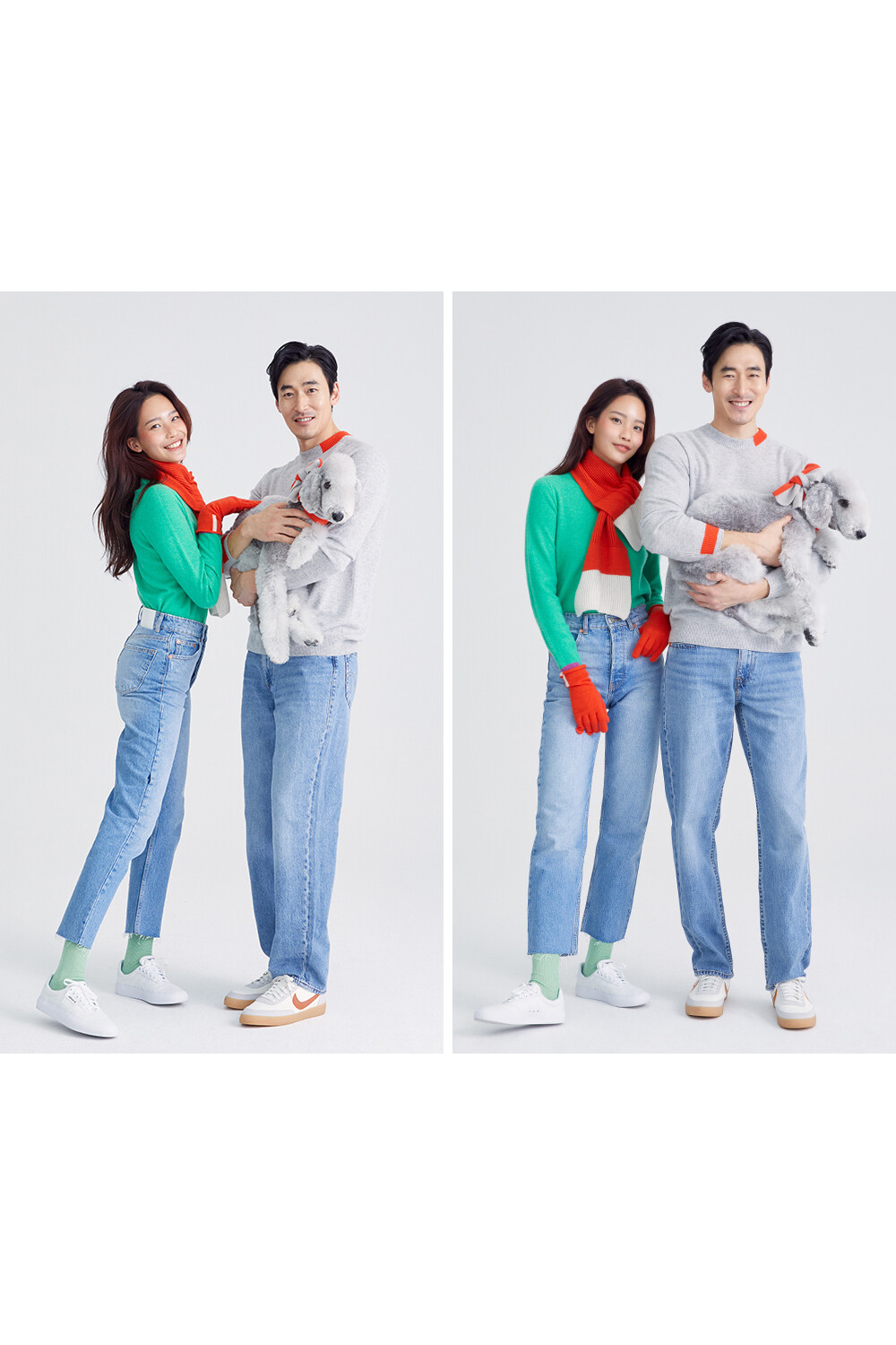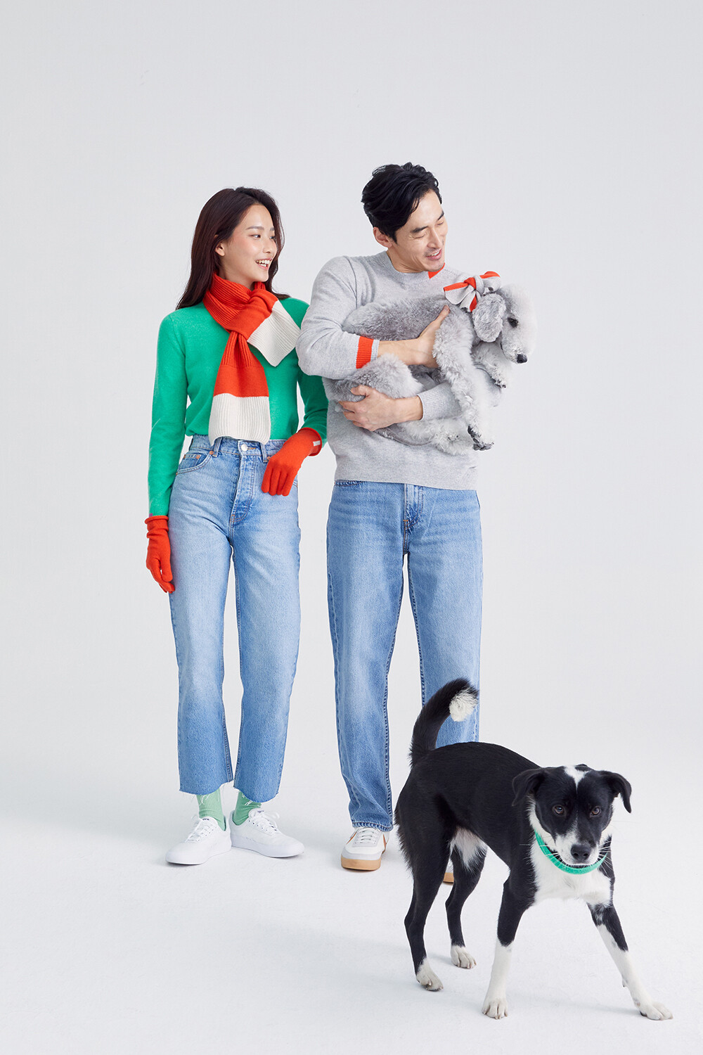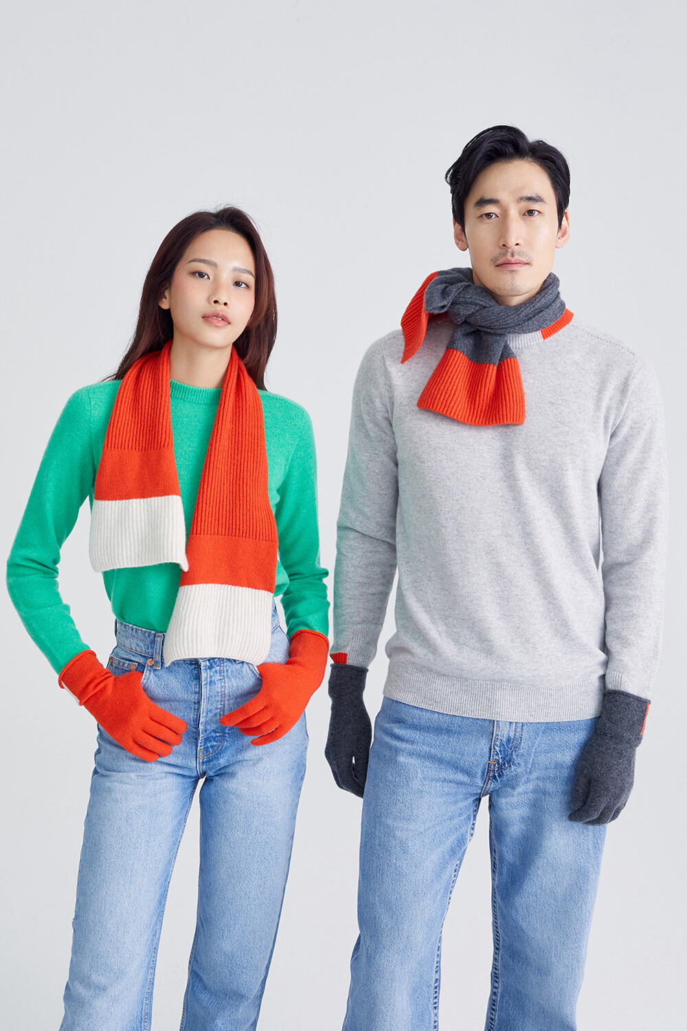 조이 크리스마스 머플러는 두 가지 컬러가 블로킹 된
