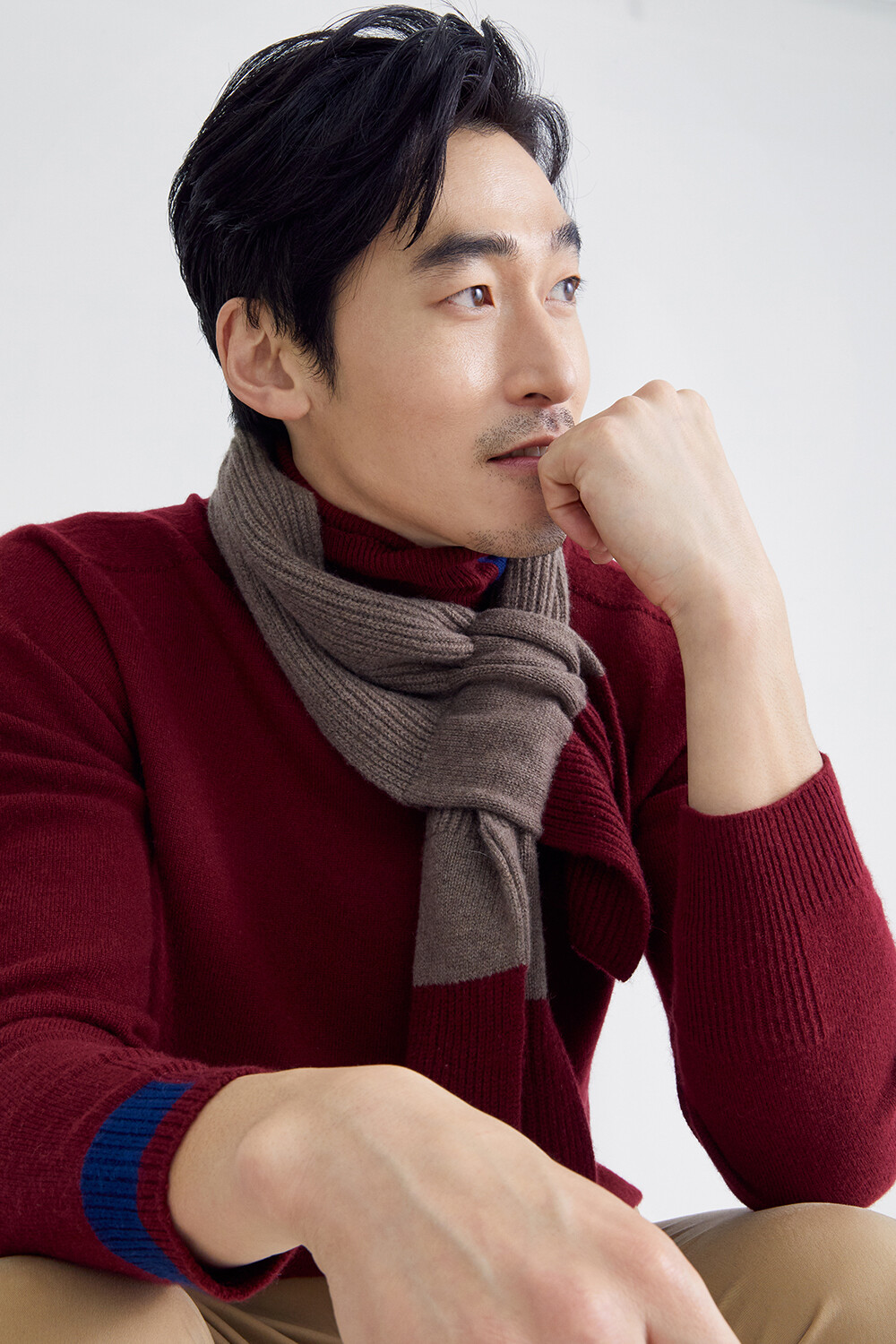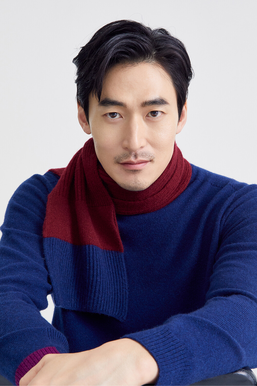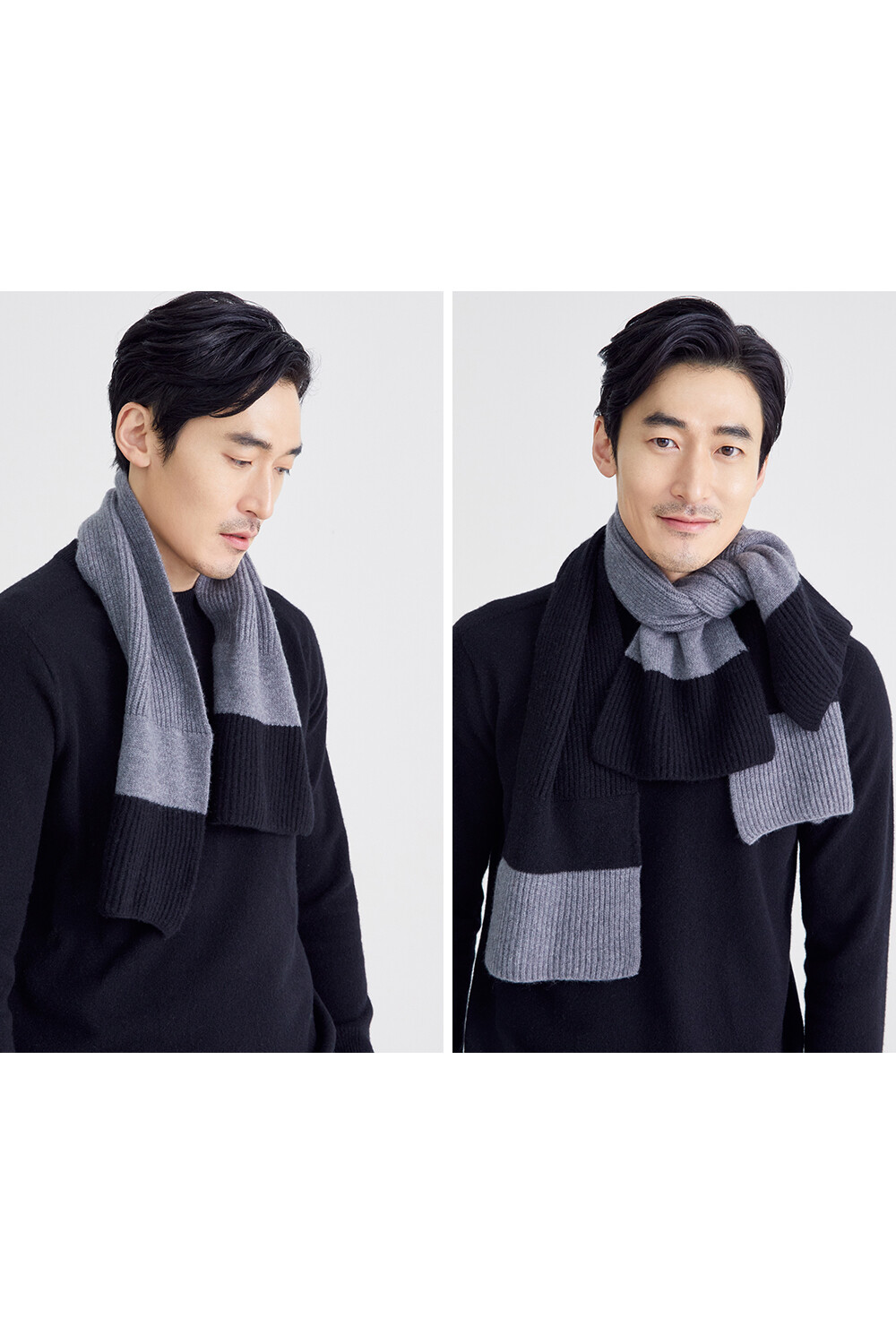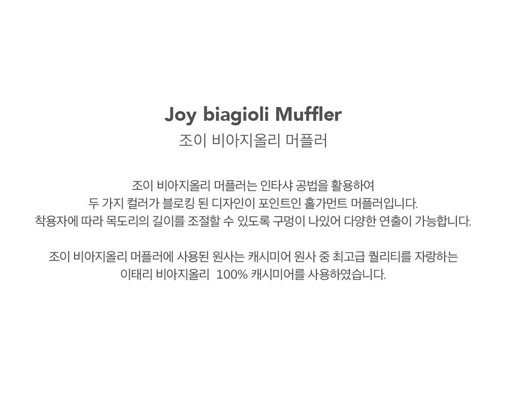 조이 비아지올리 머플러는 두 가지 컬러가 블로킹 된